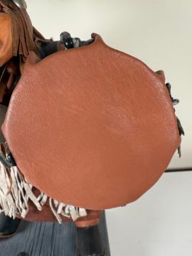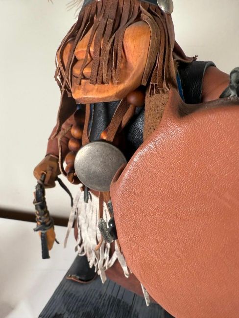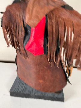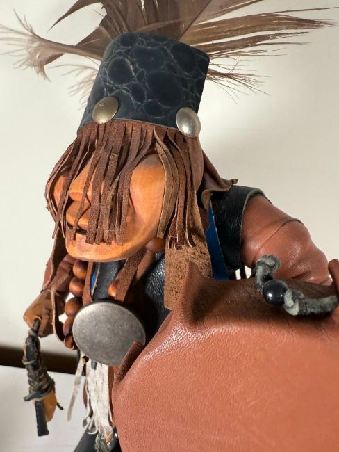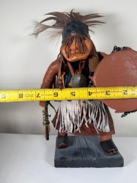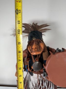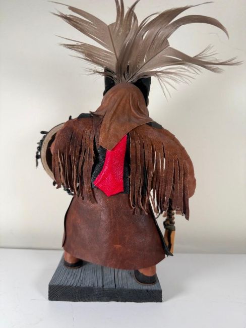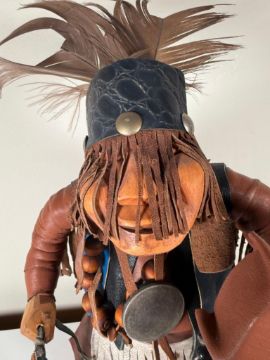 Kachina doll, unsigned.  Figure is adorned with leathers and is in excellent condition.