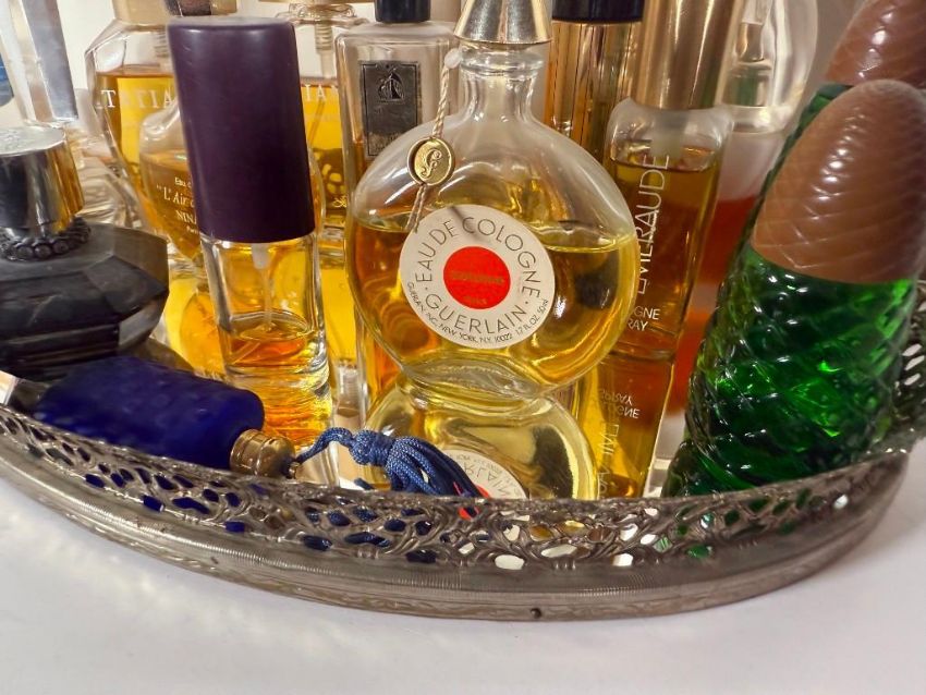 Lot of Vintage & Newer Perfumes, Perfume Bottles & a Mirrored Tray.  As shown.