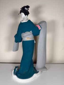 Vitage handmade Hakata Ningyo.  These are clay figures which blur the lines between doll and sculpture. Known for depicting elegant women, they are made exclusively on the southern island of Kyushu and centered in the town of Fukuoka, where the clay is easily available.