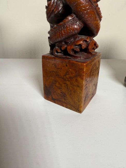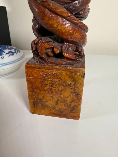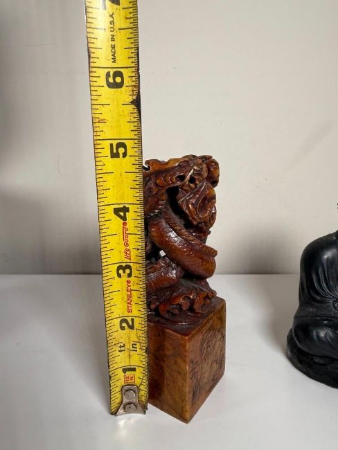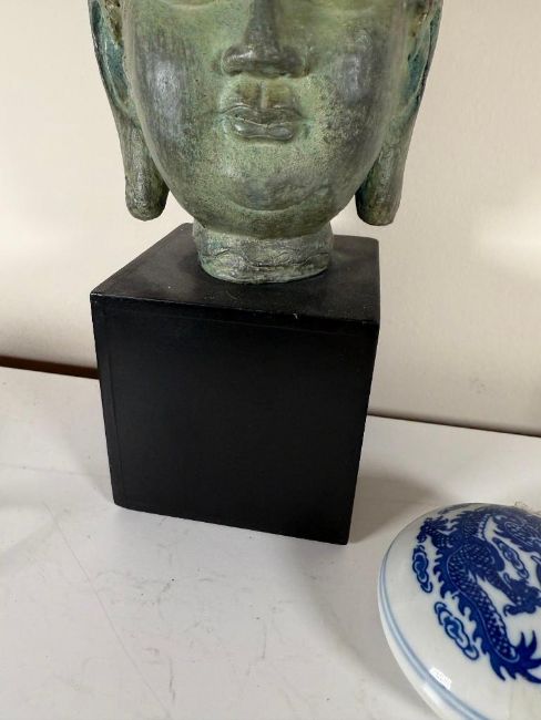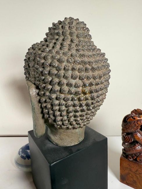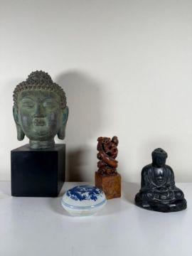 Lot of Asian Pieces: Kamakura Buddha, Chinese Soapstone Seal and a Reproduction Buddha Head.